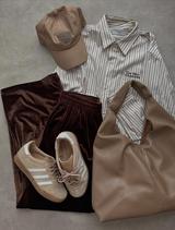 シンプルなボトムスや小物を合わせるだけで存在感のあるコーデを作り上げてくれるストライプシャツ。こちらのアイテムは「高密度に織られた細番手の超長綿を100%使用しているので肌あたりがなめらか」(公式オンラインストアより)とのこと。@ko.wearさんのように袖をロールアップして抜け感も意識してみて。