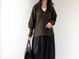 レザー調のブルゾンは、フェミニンなアイテムとも好相性。シアー感のあるフレアスカートと合わせることで、ブルゾンの重厚感のある印象を和らげてくれます。カラーは画像のブラウンと、先に紹介したブラックの2色展開。フェミニンとMIXするなら柔らかさのあるブラウンがおすすめです。