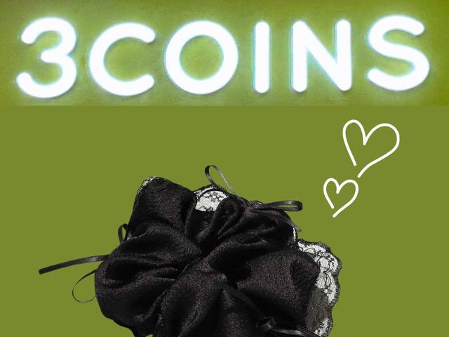 【3COINS】「レースサテンリボン付きシュシュ」¥330(税込)