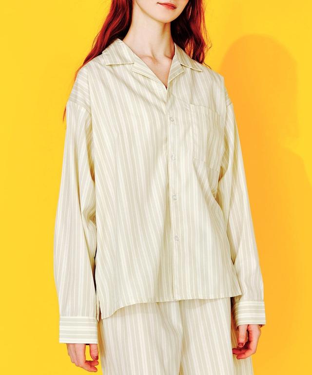 優しい色味のストライプが目を引くシャツ。ゆったりとしたオーバーシルエットは、部屋でリラックスして過ごすのはもちろん、外出着としても頼りになりそう。ユニセックスデザインだからパートナーとお揃いで着るのもおすすめです。