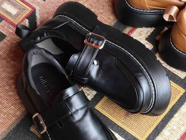存在感のある厚底ソールが今年らしいTストラップシューズ。ほどよいボリューム感にステッチワークがメリハリをプラス。公式サイトによると「低反発スポンジの中敷き入りで、ふかふかの履き心地」とのことで見た目以上に気軽に履けそう。ソックス合わせでクラシカルに、すとんと落ち感のあるワイドパンツでモードに着こなすのもおすすめ。