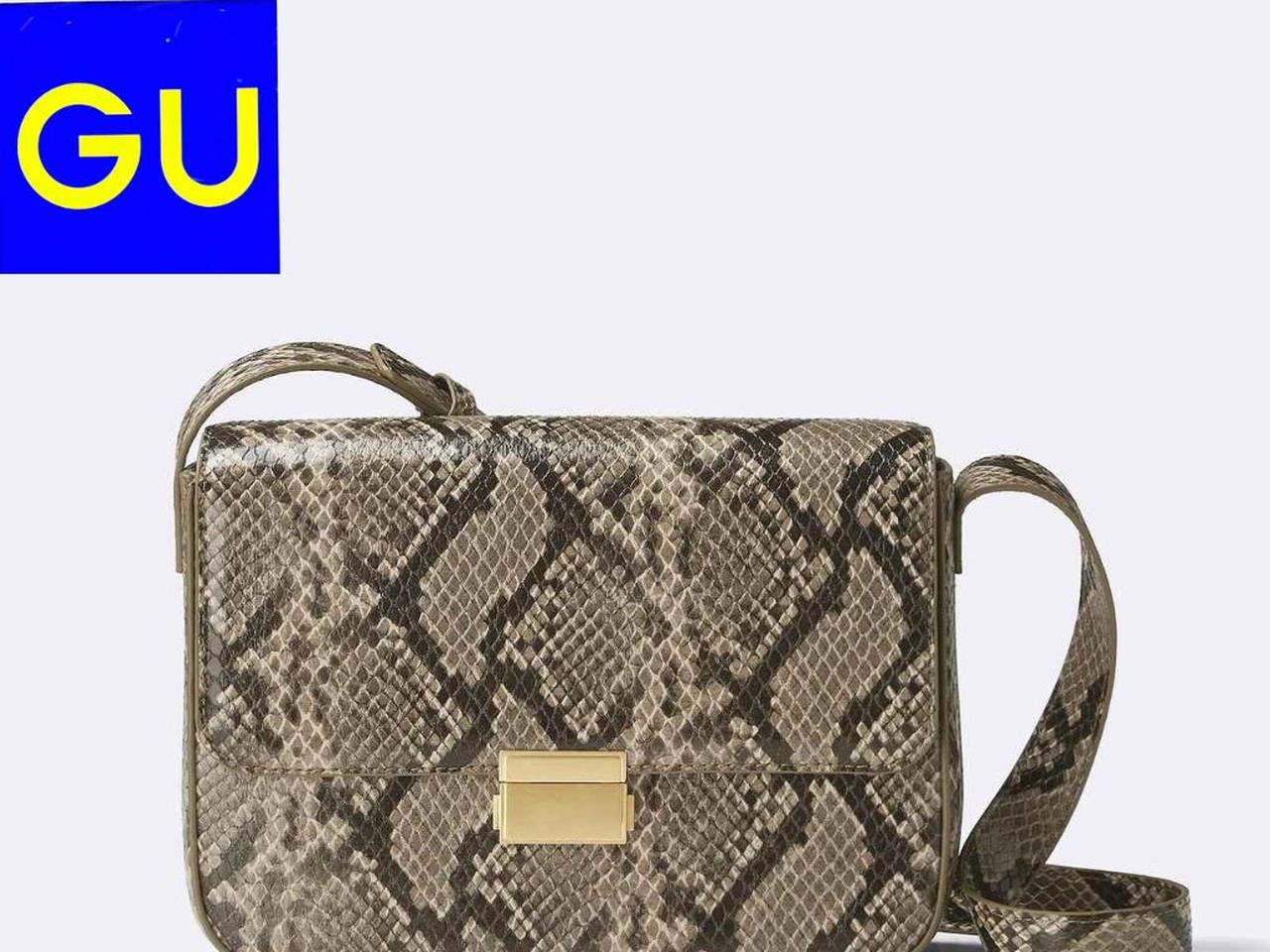 ピリッと効いたパイソン柄が、いつものスタイリングにほんのり辛口ムードを与えてくれる一品。かっちり感のあるスクエアフォルムと、ゴールドの金具で高見えも狙えそうです。長さ調節可能なショルダーベルト付きで、肩掛けでも斜めがけでも持ちやすいのがGOOD。GUらしいプチプライスも魅力の一つです。