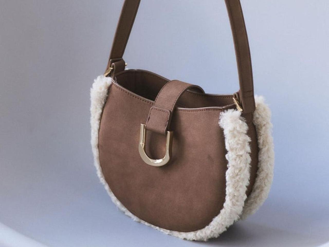 曲線的なフォルムが可愛らしいショルダーバッグ。ムートンライクなボアの縁どりや、スウェード調の素材が季節感を加速させてくれます。落ち着いた印象のこちらのブラウンと、柔らかい雰囲気のベージュの2色展開です。