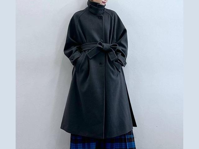 まずご紹介するのは【GU(ジーユー)】の、羽織るだけでスタイルが決まるコクーンシルエットコート。程よく丸みのあるフォルムが女性らしさを演出しつつ、縦のラインを強調するロング丈が全体をシャープに印象付け。一万円以下で、どんなスタイルにもなじむ一着が手に入るのも嬉しいポイント。