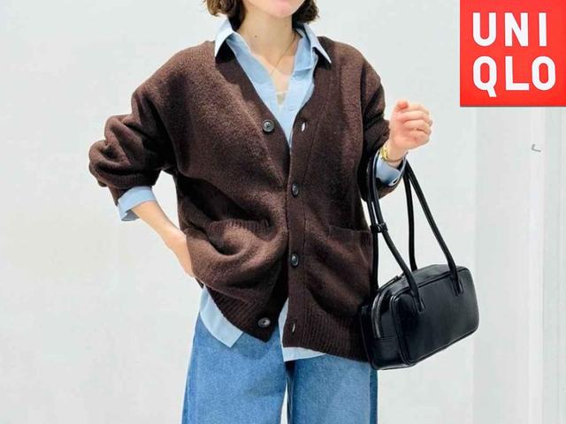 【GU】「パフニットVネックカーディガン」¥2,990(税込)