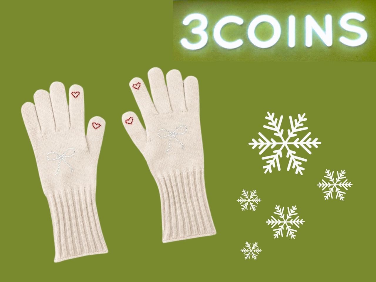 【3COINS】「ラインストーン付きニット手袋」¥880(税込)