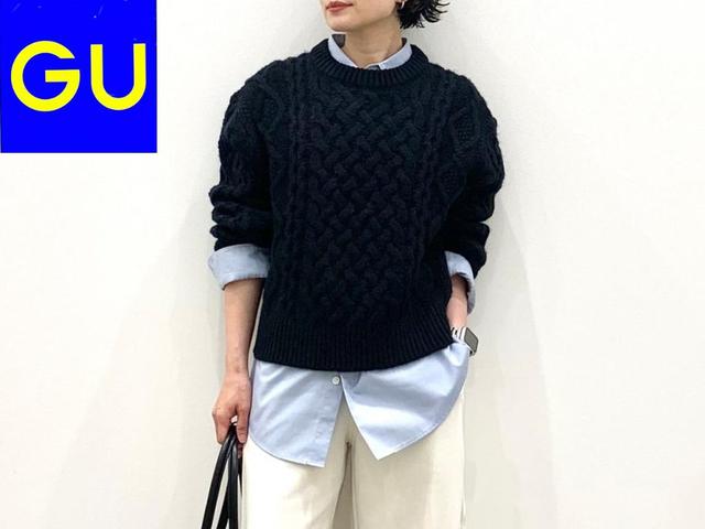 【GU】「ケーブルクルーネックニットプルオーバー」¥1,990(税込・セール価格)