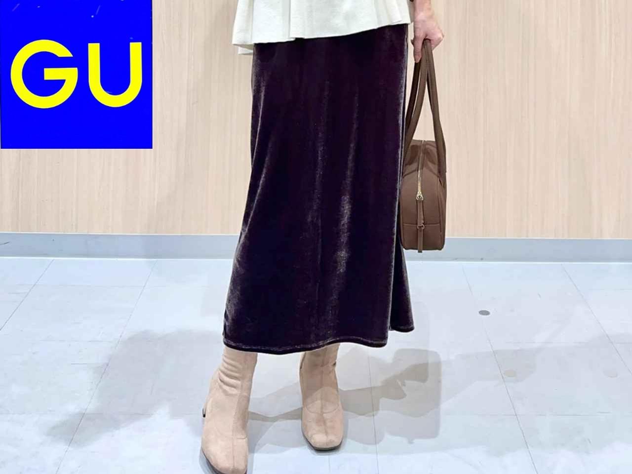 【GU】「ベロアナローマキシスカートZ+E」¥1,290(税込・セール価格)