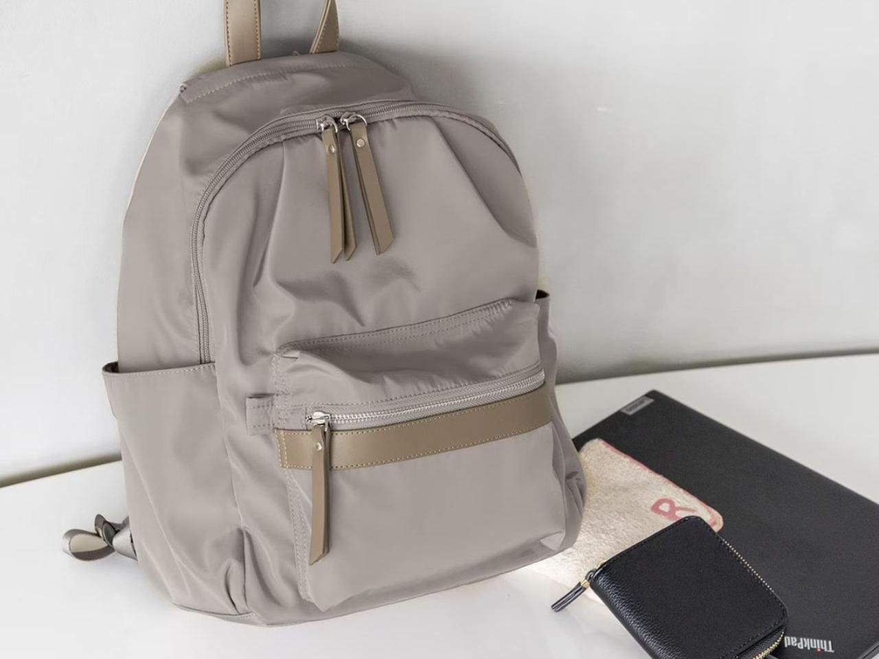 カジュアル感が出やすいリュックも、部分的にレザー調素材が使われてことで品が生まれ、大人コーデにも取り入れやすいデザインに。落ち着いたカラー展開が揃い、大人だからこそ選びたくなるアイテムです。撥水・軽量の機能性に加え、10個のポケットを備えた高い収納力も嬉しいポイント。見た目と実用性を兼ね備え、つい出番が増えそうなアイテムです。