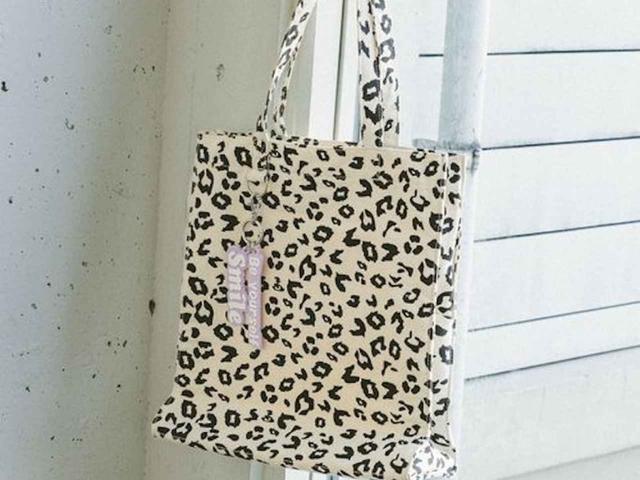 キャッチーなレオパード柄に、チャームで遊び心を効かせたトートバッグ。ファスナー付きの開口部に加え、BIGサイズうちわ対応の内ポケットなど、推し活シーンにもうれしい機能が充実しています。底板は取り外しできるので、シーンに合わせて軽やかに持てるのも魅力。ホワイトベースの柄なので、冬の落ち着いた色味のコーデにもマッチしそう。