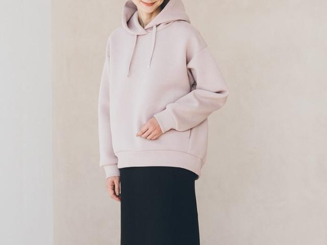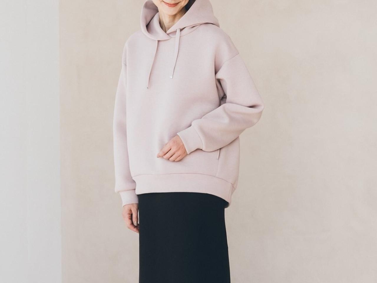 タイムレスなフーディーもちょっぴり春を意識したカラーなら、ダークカラーに偏りがちな冬コーデの更新にもぴったり。シンプルなデザインながらハリのある生地感でラフになりすぎず、大人っぽく着られそう。タイトなスカートでメリハリを加えたり、柄パンツで遊びを効かせたりと、合わせるアイテム次第でさまざまな表情が楽しめるのも、ベーシックならではの醍醐味。