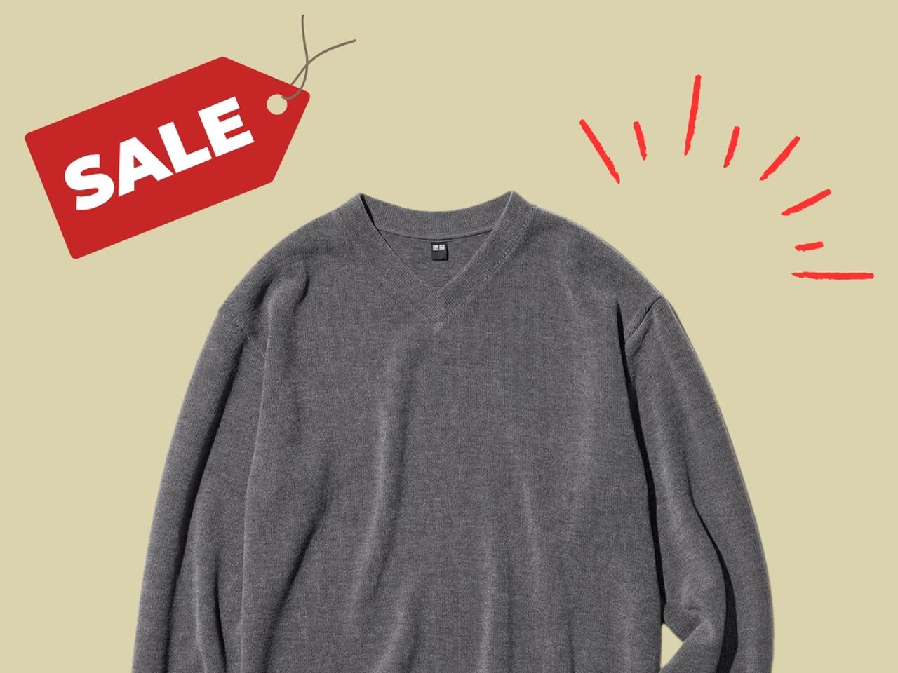 【ユニクロ】「ソフトニットフリースVネックT」¥1,290(税込・セール価格)