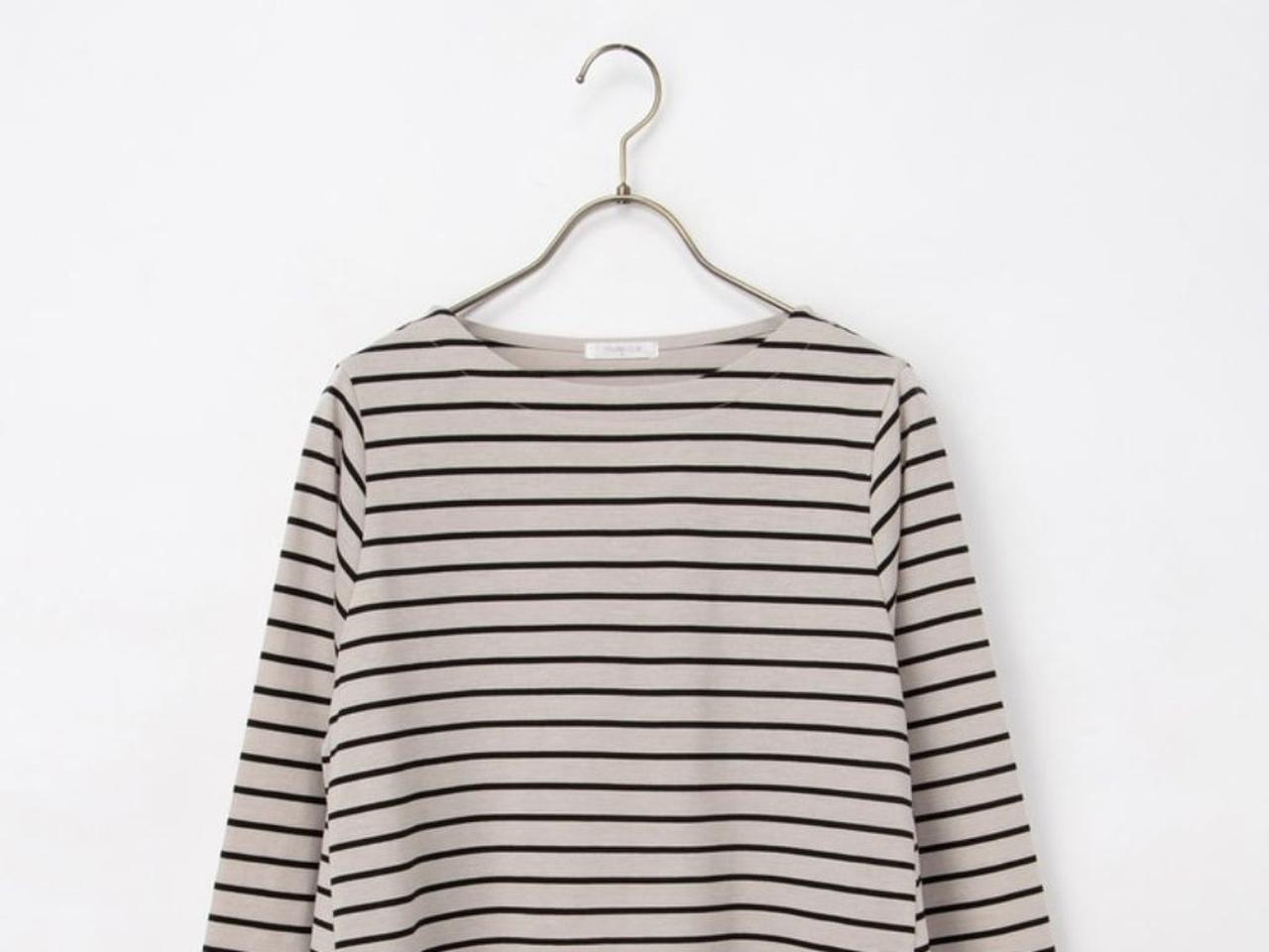 裾に向かってゆるやかに広がるAラインシルエットが、ウエスト周りの体型カバーにも一役買ってくれそうなTシャツ。サイドに入った切り替えが、メリハリのある装いに貢献してくれそうです。さらりとしたきれいな表面感の素材で、カジュアルな印象になりがちなボーダー柄も大人顔に仕上がるのが嬉しいところ。