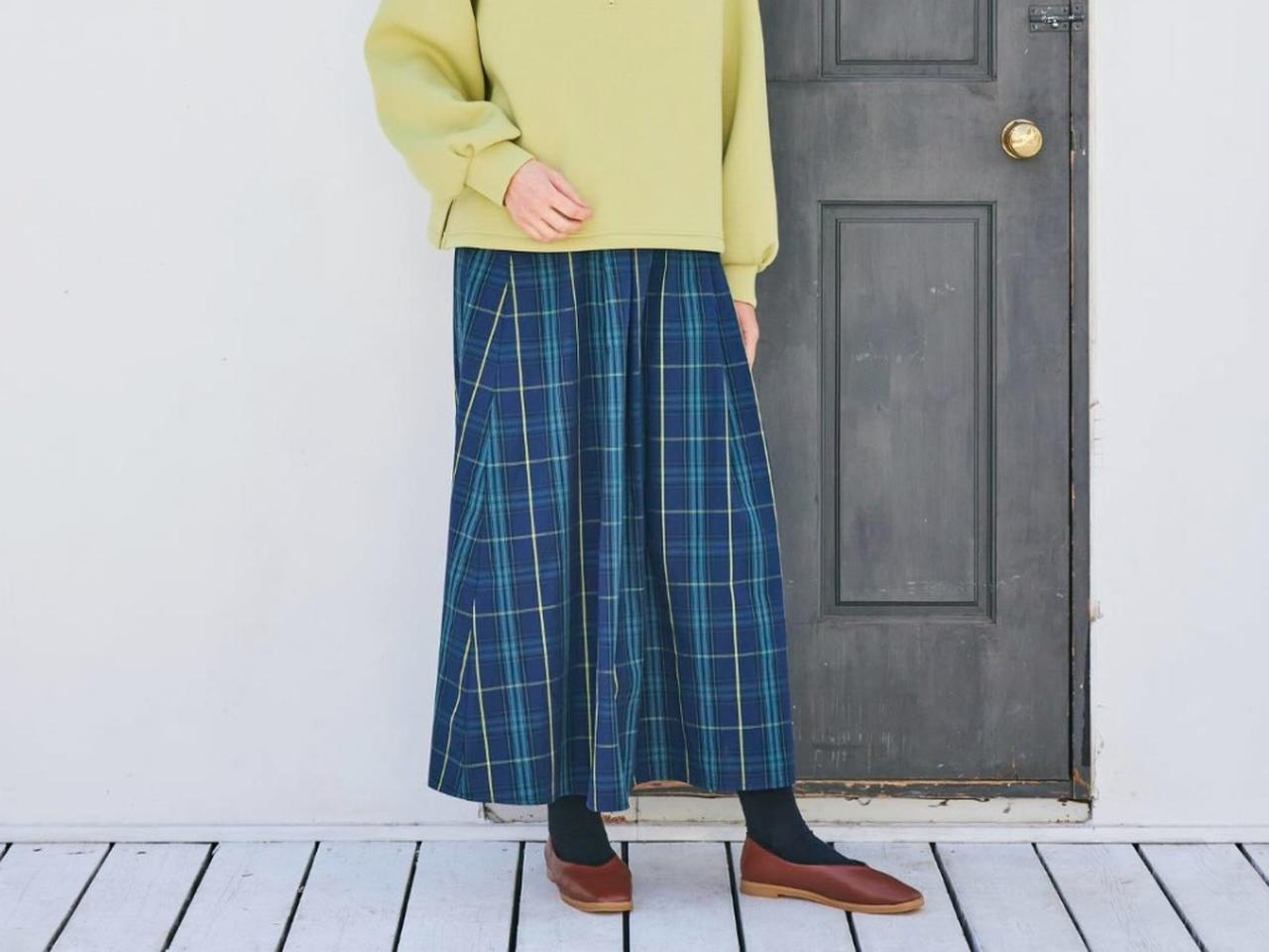公式Instagramにて「着心地がラクちん」とコメントされているこのスカートは、ウエストまわりやシルエットに窮屈さがなく、長時間はいてもストレスを感じにくい一枚。気負わず穿けるのに女性らしさが加わるのは大人にとってうれしいポイントです。ブルーベースのチェック柄が、無難になりがちな大人のコーデにさりげない個性をプラス。カラーアイテムと掛け合わせた足し算コーデで、上級見えするバランスに。