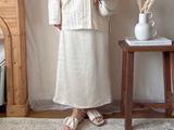 スカートと合わせれば、スニーカーの存在感がより引き立つスタイリングに。程よくボリュームのある厚底ソールなので、スッキリとしたIラインスカートを選べばメリハリが生まれ、バランスよく着こなせそう。トップスはオーバーサイズのスウェットをチョイスして、ラフに仕上げるのも真似したいところ。