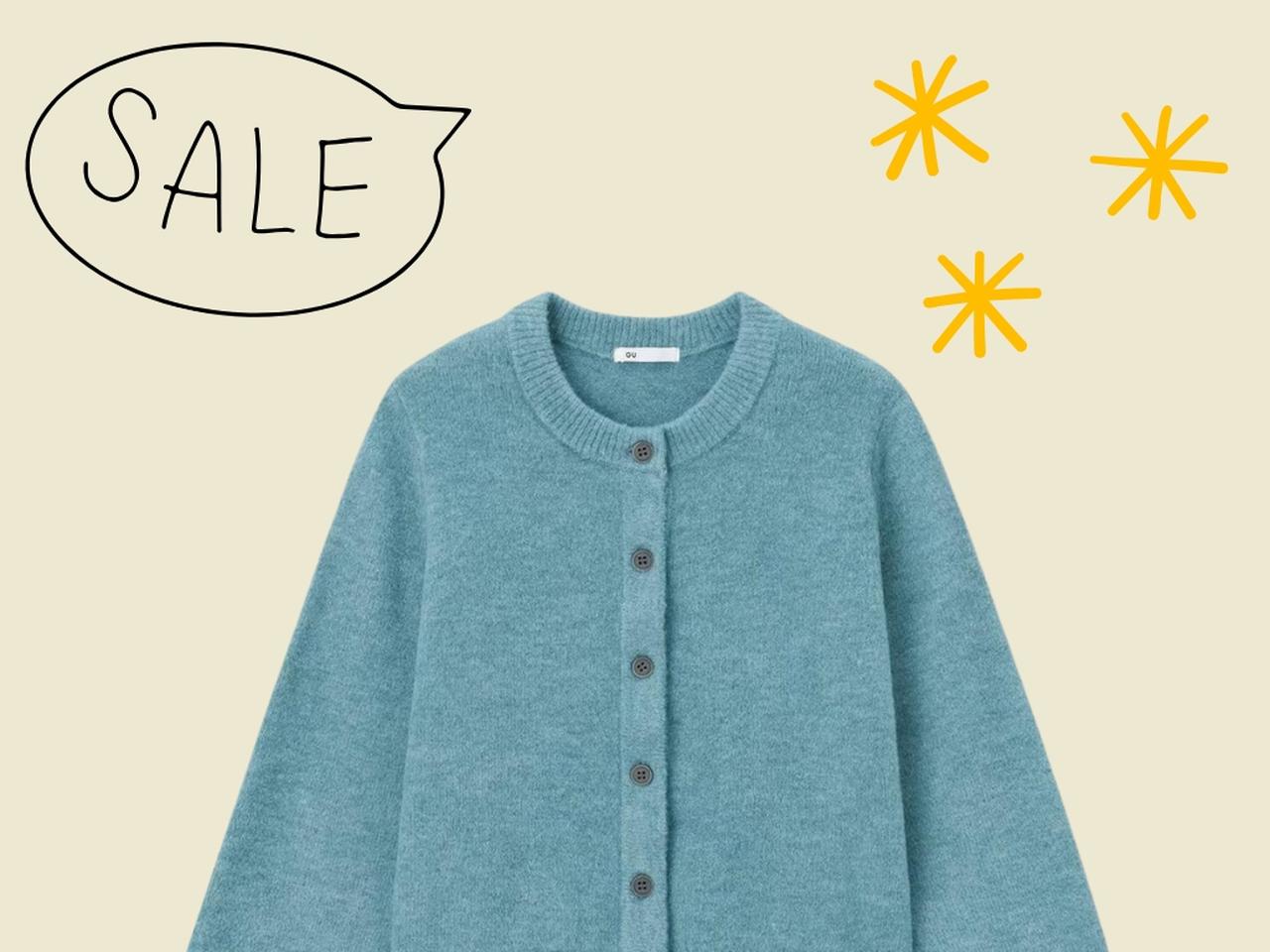 【GU】「パフニットクルーネックカーディガン」¥1,290(税込・セール価格)