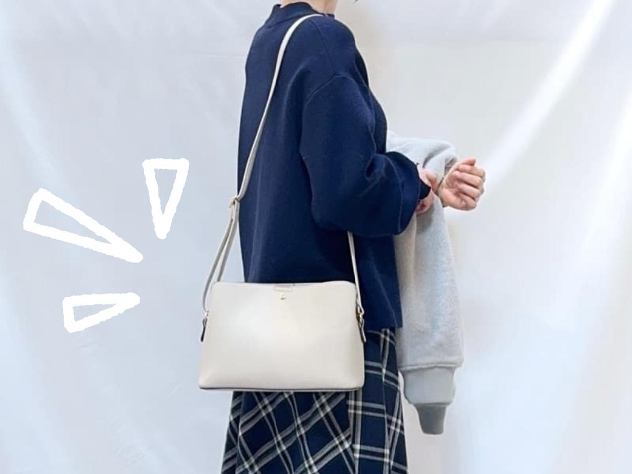 コンパクトなフォルムの中に、3層構造の整頓力が備わったショルダーバッグ。一枚革風で仕上げられており、プチプラながら大人世代も納得の高見えが叶いそう。カジュアルにもきれいめにも馴染む懐の深さで、平日も休日もシームレスに対応。両手を空けられるから、レジャーシーンやテーマパークコーデにもおすすめです。