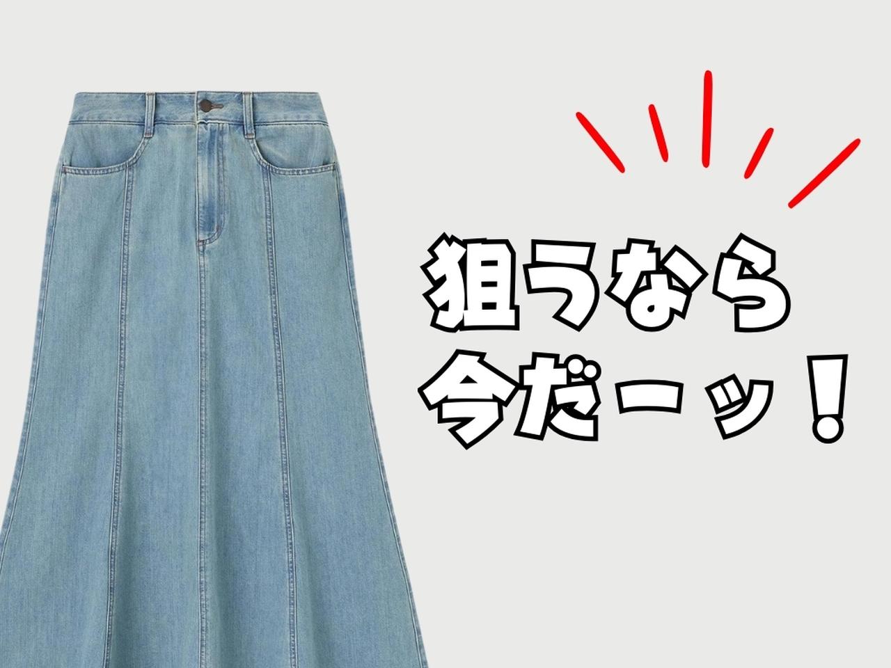【GU】「ライトデニムフレアマキシスカート」¥1,990(税込・セール価格)