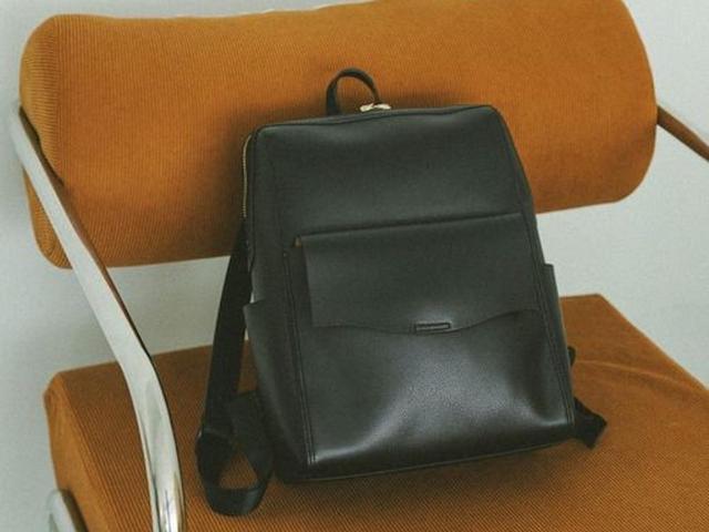 余計な装飾を抑えたシンプルなスクエアデザインのリュック。上品見えしそうなレザー調素材は軽量仕様なうえ、撥水加工が施されており日常使いしやすそう。ミニマルなルックスながらA4サイズや13インチPCも収まる収納力も魅力です。カラーはきれいめな着こなしにもフィットしそうなアイボリー、ブラック、ベージュの3色展開。