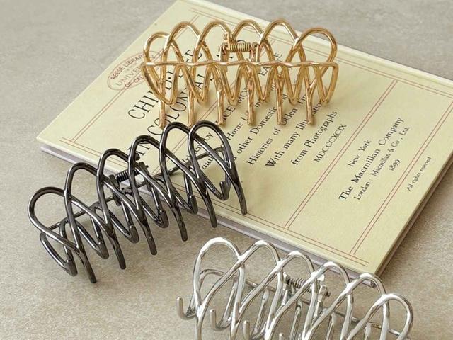 こちらのバンスクリップは、波打つようなラインが印象的。立体感のあるフォルムで、まとめ髪にさりげない動きをプラスしてくれそうです。太陽の下できらりと存在感を増すメタル調素材で、お出かけシーンが一気に楽しくなりそう。ひとつ結びはもちろん、ラフにまとめたお団子ヘアやハーフアップに合わせてこなれたムードで楽しむのもありです。