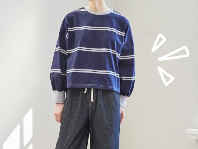 女性雑誌「リンネル」と「In Red」がプロデュースし、しまむらで展開されているブランド【SEASON REASON by Lin.&Red(シーズンリーズン バイ リンアンドレッド)】のボーダーTシャツ。ふんわりとした袖に短めの丈感がポイントです。シルエットだけでもシャレ見えし、ほどよい抜け感のある大人のカジュアルコーデが楽しめそうです。公式Instagramにも「ボーダーを取り入れるとぐっと春らしくなります」とあるように、ボーダーアイテムは春コーデに欠かせない存在かも。取り入れるだけで、季節感のある着こなしに仕上がります。