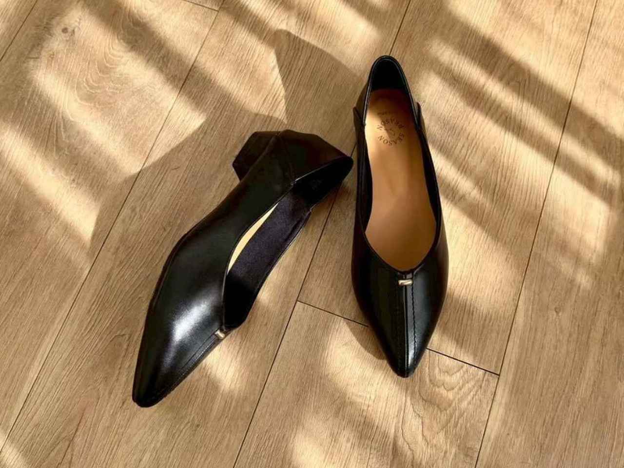 今回ご紹介するのは、ポインテッドトゥとローヒールを組み合わせた、シンプルで端正なパンプス。さりげないゴールドパーツがアクセントになり、ミニマルながらも抜かりない仕上がりです。カラーはブラックとホワイトの2色展開。コーデに馴染みやすく、どちらを選んでも品よく大人な印象に導いてくれそう。公式Instagramで提案されているコーデをチェックしていきましょう。