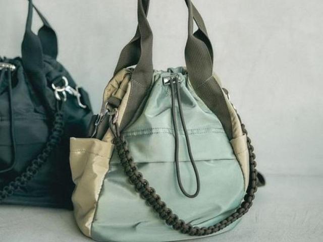 スポーティーな素材感と、編み込みのハンドルがアクセントになった巾着バッグ。ミリタリーなニュアンスを放つカーキがちょっぴりタフな印象を生み、一点投入するだけで今っぽさが加速しそう。サイドポケット付きで荷物の整理もしやすく、デイリー使いにちょうどよいサイズ感が魅力。ラフなデニムスタイルにはもちろん、あえて甘めのワンピースに合わせて“ハズし”を効かせるのも、大人ならではの楽しみ方かも。