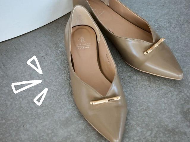 シャープなVカットが脚のラインを美しく見せてくれそうなパンプスは、アッパーについたメタルリボンが華やかな印象。肌馴染みの良いベージュを選べば、脚長効果も期待できそうです。フラットタイプで歩きやすさもあり、忙しく動き回る日でも快適に過ごせそうなのが嬉しいポイント。きれいめなワンピースから、あえてカジュアルなパンツスタイルの引き締め役まで。足元からトレンドを賢く取り入れてみて。