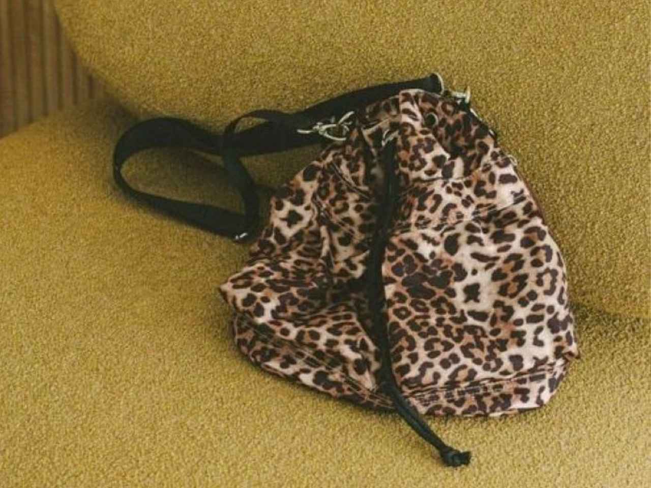 カジュアルな中に大人の落着きを添えてくれそうな、レオパード柄の巾着バッグ。柔らかな丸いシルエットが、ハードになりがちなアニマル柄をほどよくマイルドに。撥水加工付きの軽量な素材感は、デイリー使いはもちろん、天候が不安な日の外出にも頼もしい存在になりそう。シンプルなワンピースやデニムスタイルの外し役として投入すれば、一気に都会的なムードが高まります。
