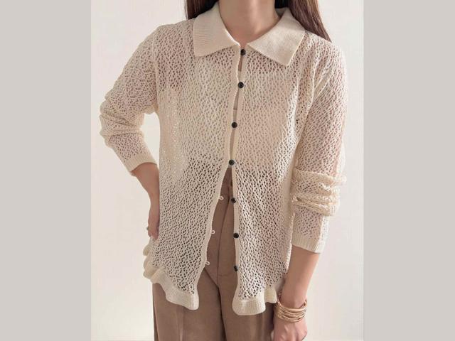 @chii_150cmさんは、透かし編みならではの表情が魅力のカーディガンをレコメンド。肌を見せすぎず軽やかなムードを取り入れられるから、大人のデイリーコーデにもしっくりなじんでくれるかも。手持ちのトップスにサラッと羽織れば、奥行きのあるスタイリングを楽しめそうです。キャミソールやタンクトップなど、合わせるインナーで印象チェンジを図って。襟付きデザインで、ほどよくきちんと感があるのも大人女性にはうれしいところ。