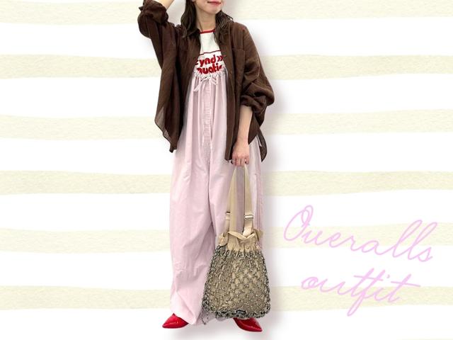 今回注目したのは、こちらのギャザーサロペット。たっぷりなボリュームと細めのストラップのメリハリバランスがちょうどよく、「華奢見えシルエットを実現」と公式で紹介されるのも納得のアイテムです。シアーシャツを重ねればぐっと軽やかな印象に。抜け感のあるレイヤードで、春らしい着こなしが楽しめます。