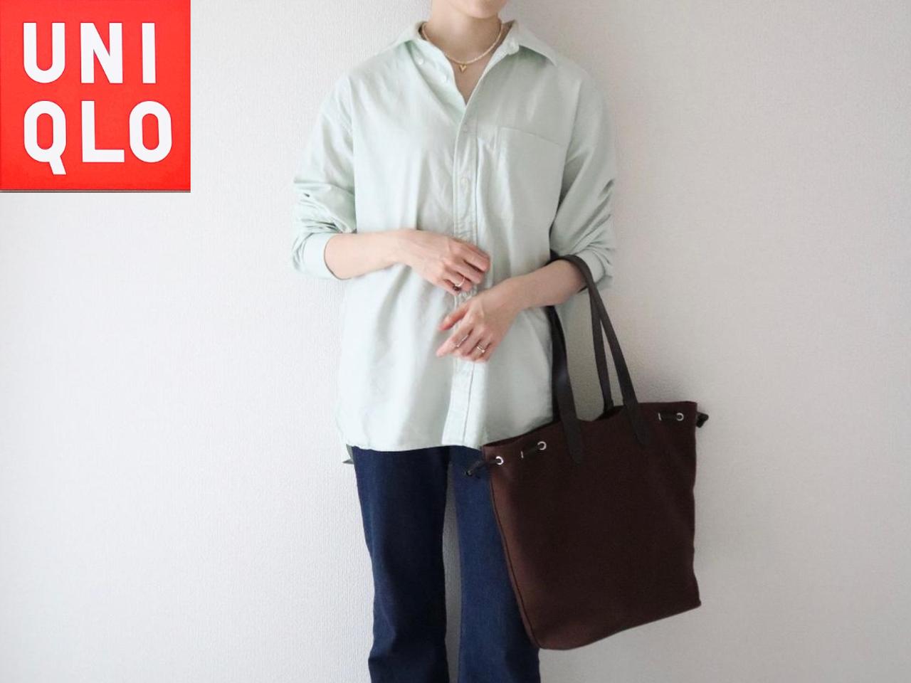 ユニクロアイテムを使ったコーデを投稿している@shocogram__さんが「春に着たいきれいめカラーのシャツ」とコメントするグリーンのシャツ。ゆるりとしたシャツ × ジーンズのカジュアルなワンツーコーデは、袖をたくし上げたり、襟元にアクセサリーを添えたりといったひと手間が、こなれ感UPの秘訣。カジュアルアイテム同士の組み合わせも、ぐっと女性らしい印象に着地します。