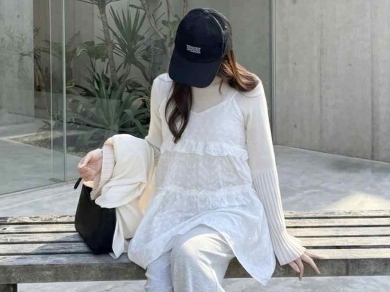 ラフなスウェットスタイルに、フリルと小花柄レースが華やかなキャミチュニックを合わせたのは、Instagramでプチプラコーデを発信されている@__koko.oさん。コーデに取り入れるだけで格が上がりそうなレースキャミは、あえてカジュアルなアイテムと合わせて存在感を引き立てるのがポイント。キャップやバッグに黒を選んでピリッと引き締めて。