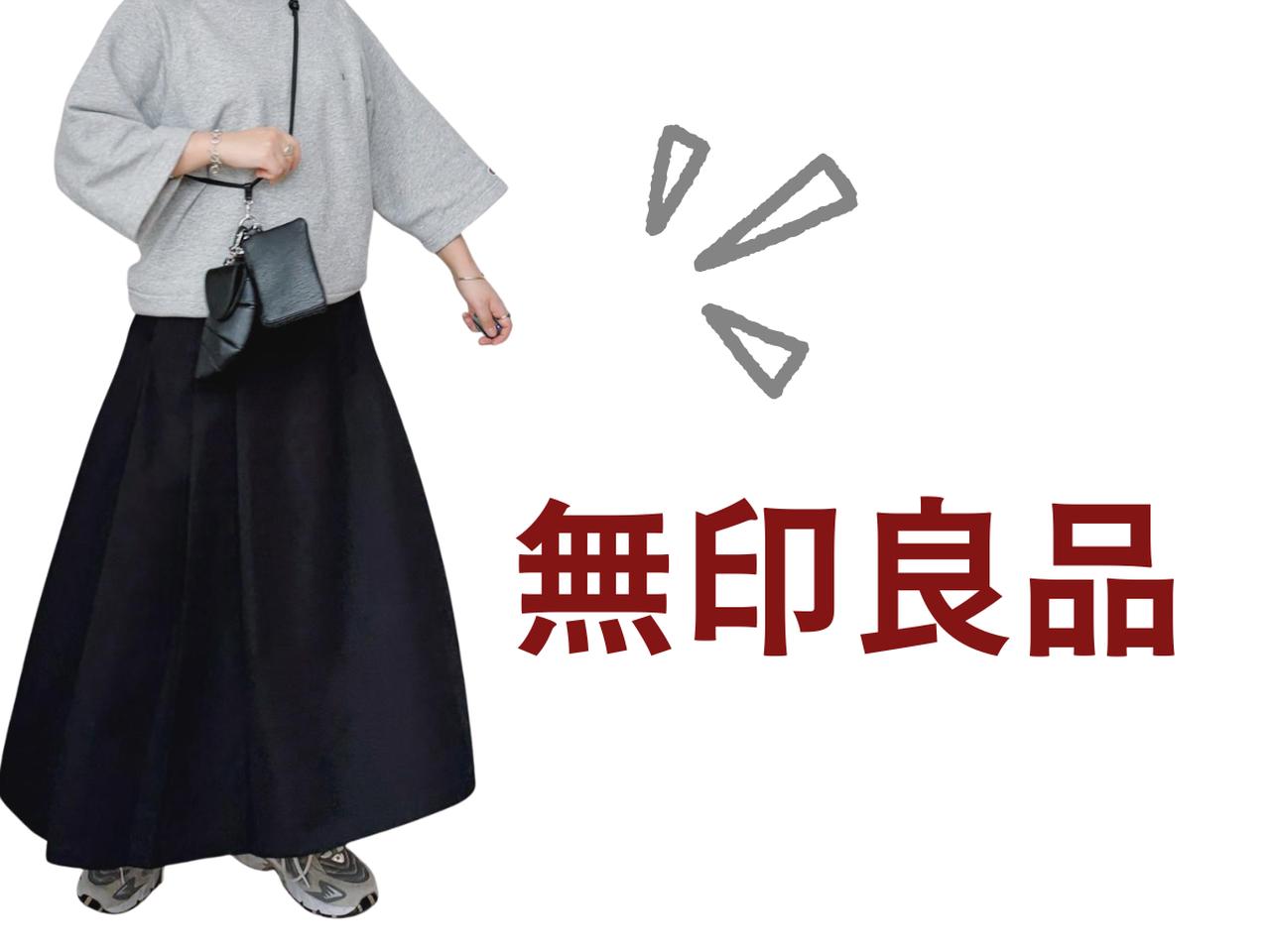 立体感のあるシルエットが目を引く、無印良品のフレアスカートを使ったコーデ。動きに合わせてサイドに入ったタックがふわっと広がり、ワンツーコーデも印象的に仕上がるはず。カジュアルなトップスやスニーカーを合わせてラフに着こなすのもおしゃ見えのコツ。手首や足首を少し見せると、メリハリが生まれスッキリとしたバランスに。