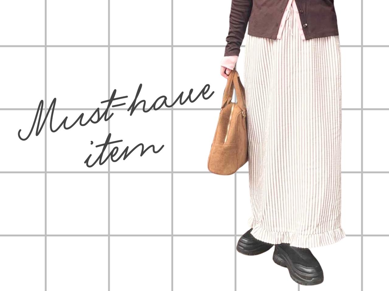 ストライプ柄に裾フリルを組み合わせたスカートは、さりげなく個性をプラスできるデザインが魅力。個性的ながらもカントリー調のような優しい印象もあり、主張しすぎない絶妙なバランスで着こなすことができそう。ファッショニスタのようにカーディガンを重ねたレイヤードスタイルはもちろん、シンプルなTシャツと合わせても着映えするはず。トレンドアイテムともなじみやすく、スタイリング次第でさまざまな表情を楽しめそうです。