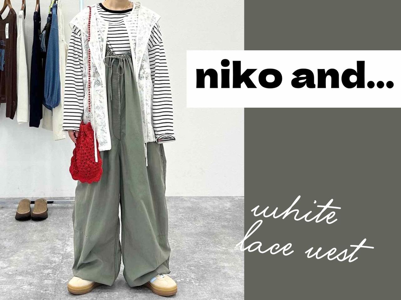インナーからシャツやスカートまで、さまざまなアイテムで活躍を見せる今季のレース素材。そんな中で編集部が注目したのは、【niko and ...(ニコアンド)】の白レースベストです。繊細な透け感でコーデに軽やかさを添え、重ねるだけでいつものアイテムを新鮮に見せてくれる一枚。前後で着られる2WAY仕様で、着こなしの幅が広がるのも魅力です。