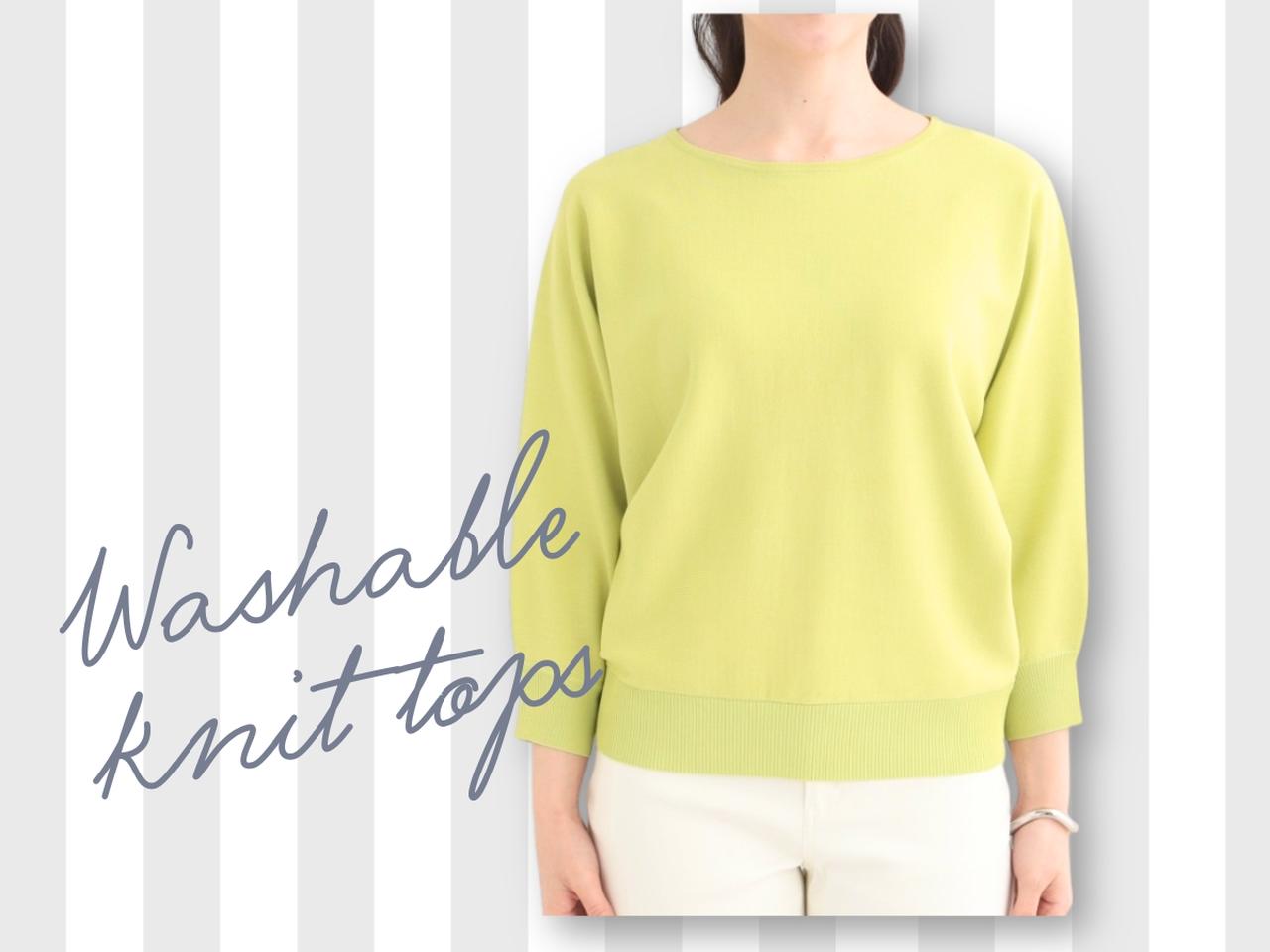 ドルマンスリーブのゆったりとしたシルエットが、腕まわりからウエストまわりまでをカバーしてくれるようなニット。体型をさりげなく整えつつ、一枚でサマになるのが魅力です。マシンウォッシャブル対応で、日々のお手入れがしやすいのも嬉しいポイント。袖リブを活かして軽く袖をまくれば、ほどよくこなれた印象に仕上がりそう。