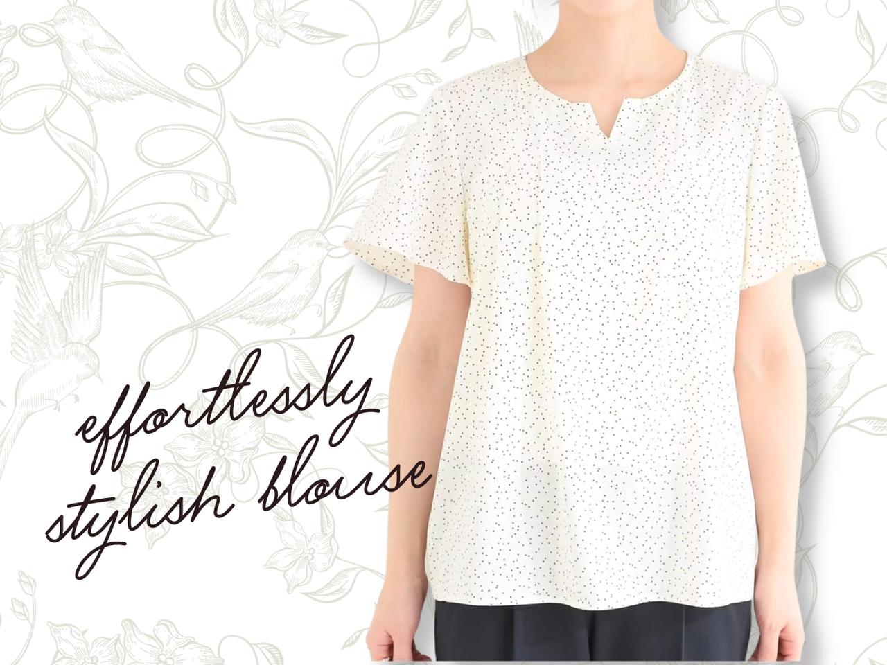 大人っぽく着られるドット柄ブラウス