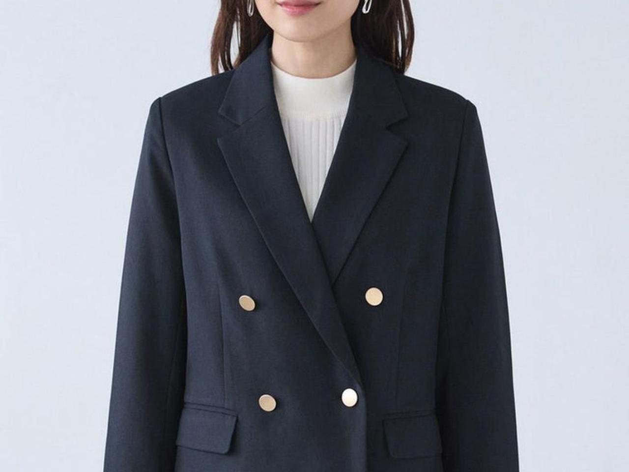 マニッシュなジャケットも、金ボタンの華やかさを借りればグッと女性らしく柔らかな印象に。見た目はきちんとしていながら、さらりと軽い素材で着心地はリラクシー。公式サイトによると、シワになりにくいようなので活躍の幅も広がりそう。