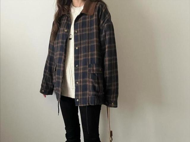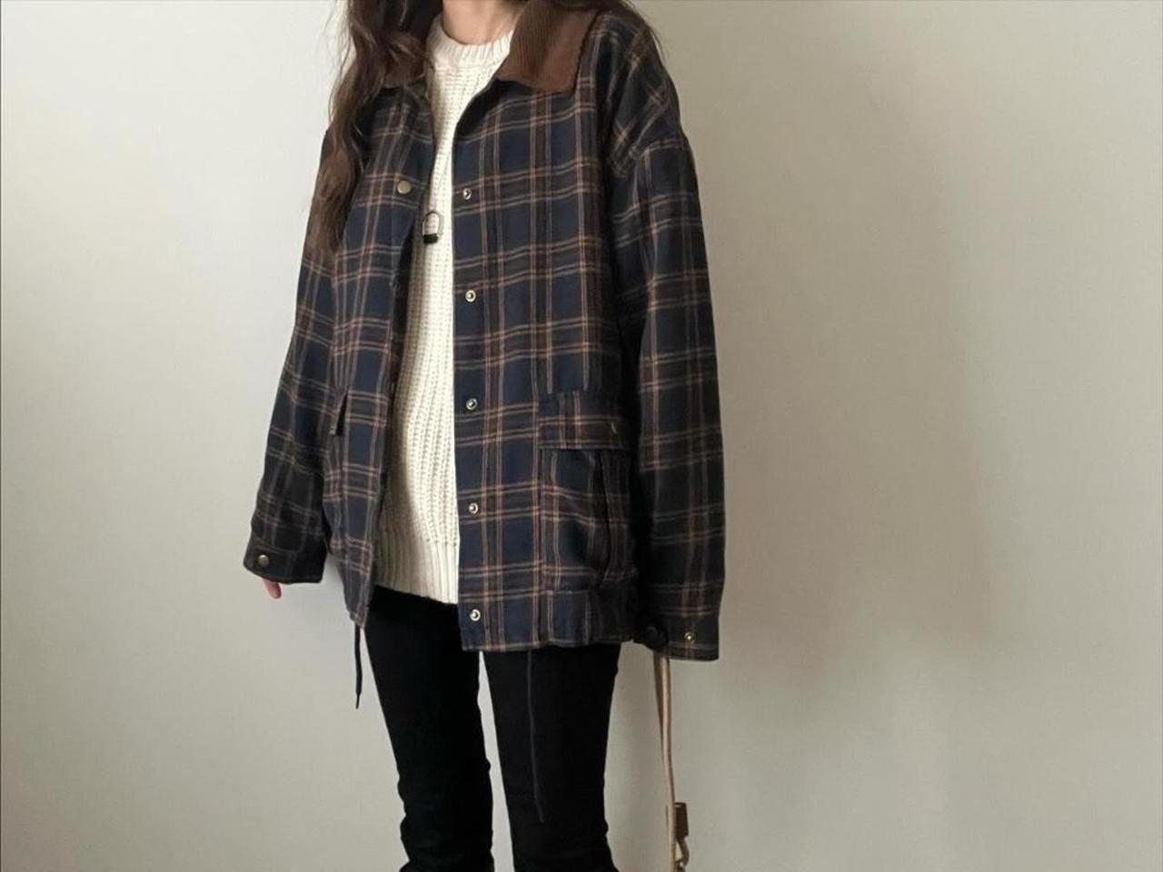 ブラウンのチェックアウターを、ロングブーツでピリッと引き締めた@sa_channn_さんの秋カジュアル。ゆるっとしたニットとスキニーの組み合わせに、重厚感のあるブーツを添えることでコーデがぐっと引き締まります。ほっこり見えしがちなブラウンチェックも、黒の締め色を効かせるだけで一気にモードな印象に。