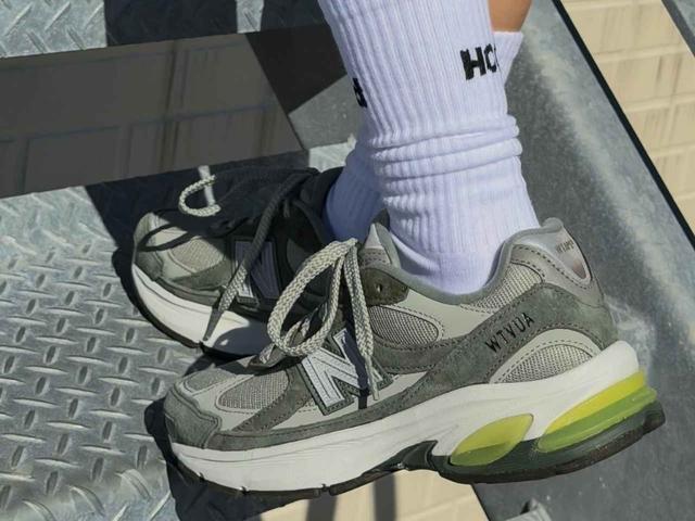ちょっと印象を変えたいときは、メタリックカラーのモデルが頼りになりそう。こちらはボリューム感のある厚底ソールと立体的なNロゴがアクセントに。オーバーサイズのトップスに黒のレギンスを合わせるときは、白の靴下を重ねることで抜け感が生まれ、コーデ全体のバランスを整えられるはず。