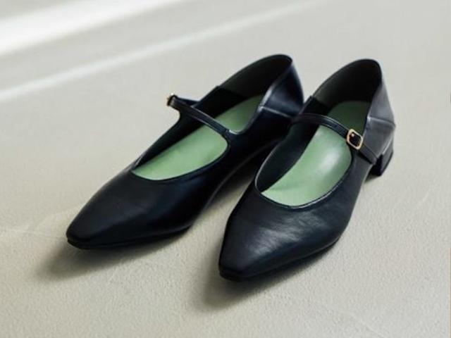 こちらは、シャープなポインテッドトゥが大人顔なメリージェーンパンプス。約2cmのローヒールだから、きれいめな着こなしにはもちろん、カジュアルコーデの引き締め役にもおすすめです。公式サイトによると「かかとに芯材を入れないソフトな設計で、一日中ストレスフリーに履ける」とのことで、たくさん歩く日にも安心。主張控えめなシンプルデザインなので、オンオフ問わず取り入れやすそう。