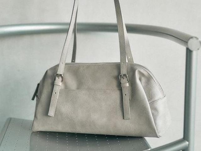 こちらは、使いこんだような素材感がヴィンテージのような雰囲気のボストンバッグ。コーデのポイントになりそうなチャームは取り外してシンプルに持ったり、お気に入りのキーホルダーを追加したりとアレンジが楽しめそう。ポーチや500mlボトル、折り畳み傘など日常に必要な荷物が収まりそうなサイズ感も日常使いしやすいポイント。