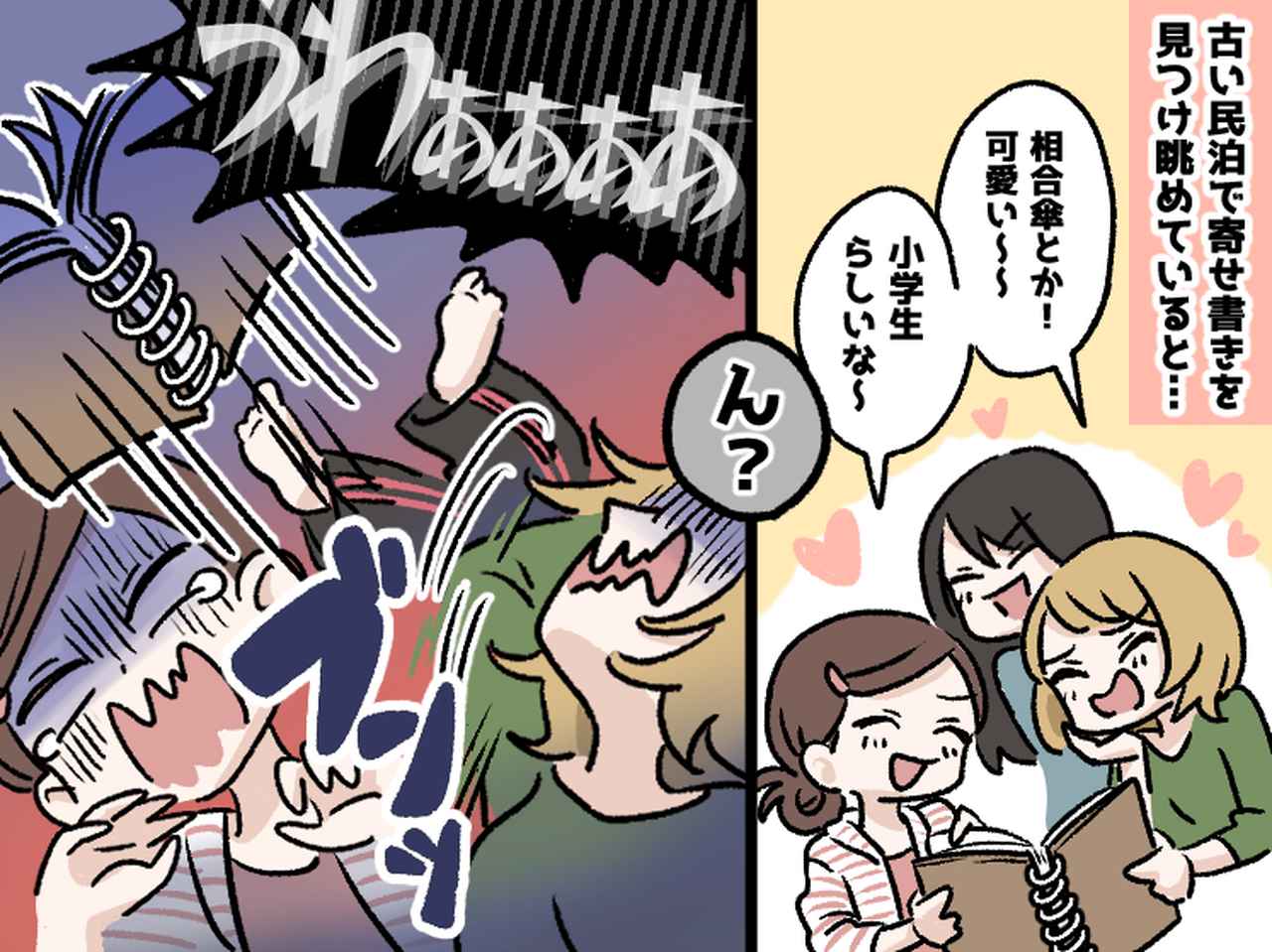 「小学生かな? 相合傘久しぶりに見たね~!」と、さらに盛り上がりながら次のページをめくります。
