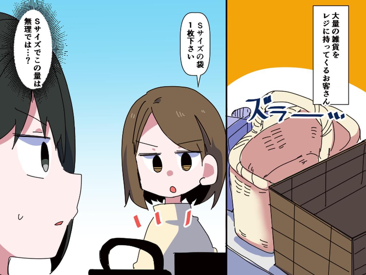 そんな中、ある女性客が大量の雑貨を抱えてレジにやってきました。両腕に積み上げた商品は抱えきれないほどで、息を弾ませながらも、堂々とした様子。「Sサイズのレジ袋を1枚ください!」その言葉に、店員は思わず目を瞬かせました。