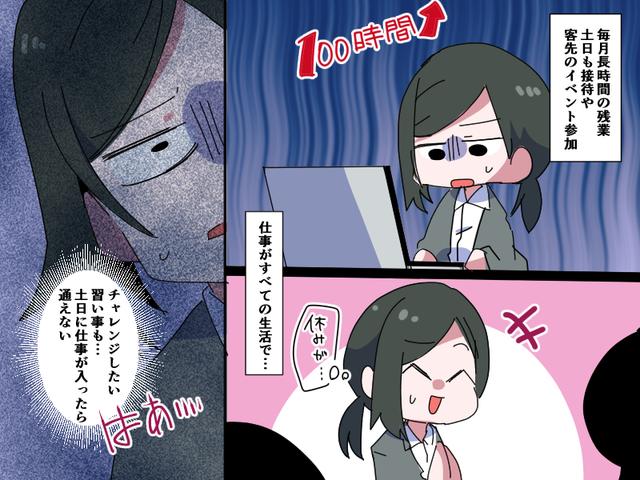 当時、本心では興味のある習い事があったのですが、「土日に仕事が入ったら通えないかもしれない」と諦め、平日の食事の誘いも「残業があるから間に合わない」と断る毎日。仕事を理由に自分の人生を制限していることに気づきながらも抜け出す気力もなく、当時の私は仕事に人生を奪われているというマイナスな気持ちでいっぱいでした。
