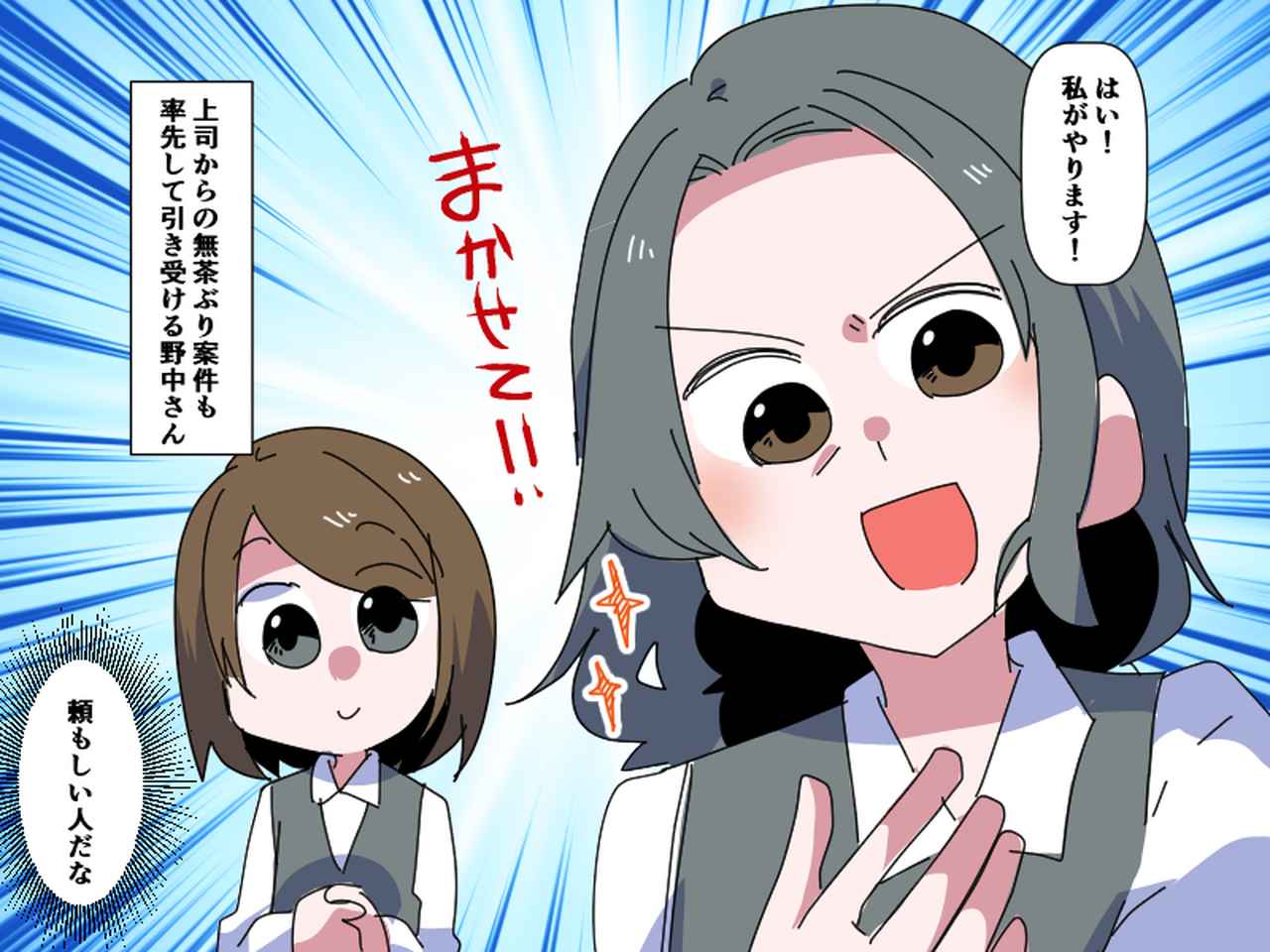 保険会社で勤務していた頃、同じ部署に野中さん(仮名)という女性社員がいました。彼女は上司の言葉に「はい!はい!」と元気よく応えるタイプで、無茶ぶりの案件も「私がやります!」と迷わず手を挙げる姿勢を見せていました。周囲も当初は「なんて頼もしい人なんだろう」と感じていました。