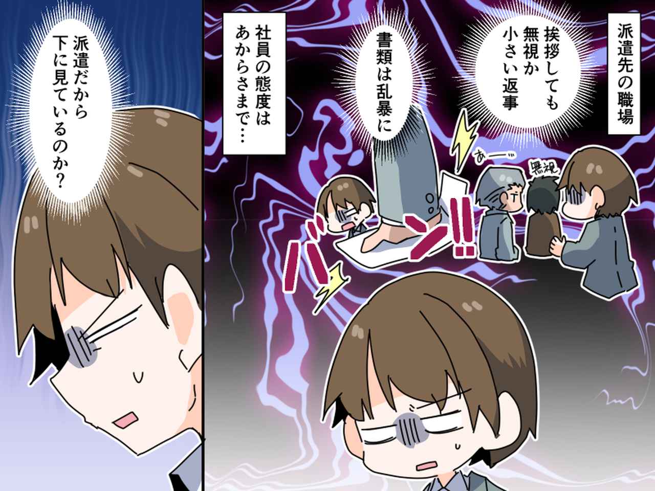 私は派遣先の職場で、20代前半の正社員と同じチームで働いていました。しかし、ある社員の態度はあからさまに嫌な感じでした。