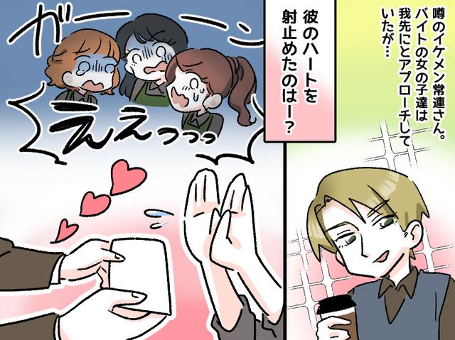 名刺を受け取ったのは、カップ争奪戦にはまったく加わっていなかった、控えめでどちらかといえば飾り気のない女性スタッフ。彼女はいつも真面目でひたむきに仕事に打ち込んでいたので、そんな姿が彼の心を射抜いたのでしょう。