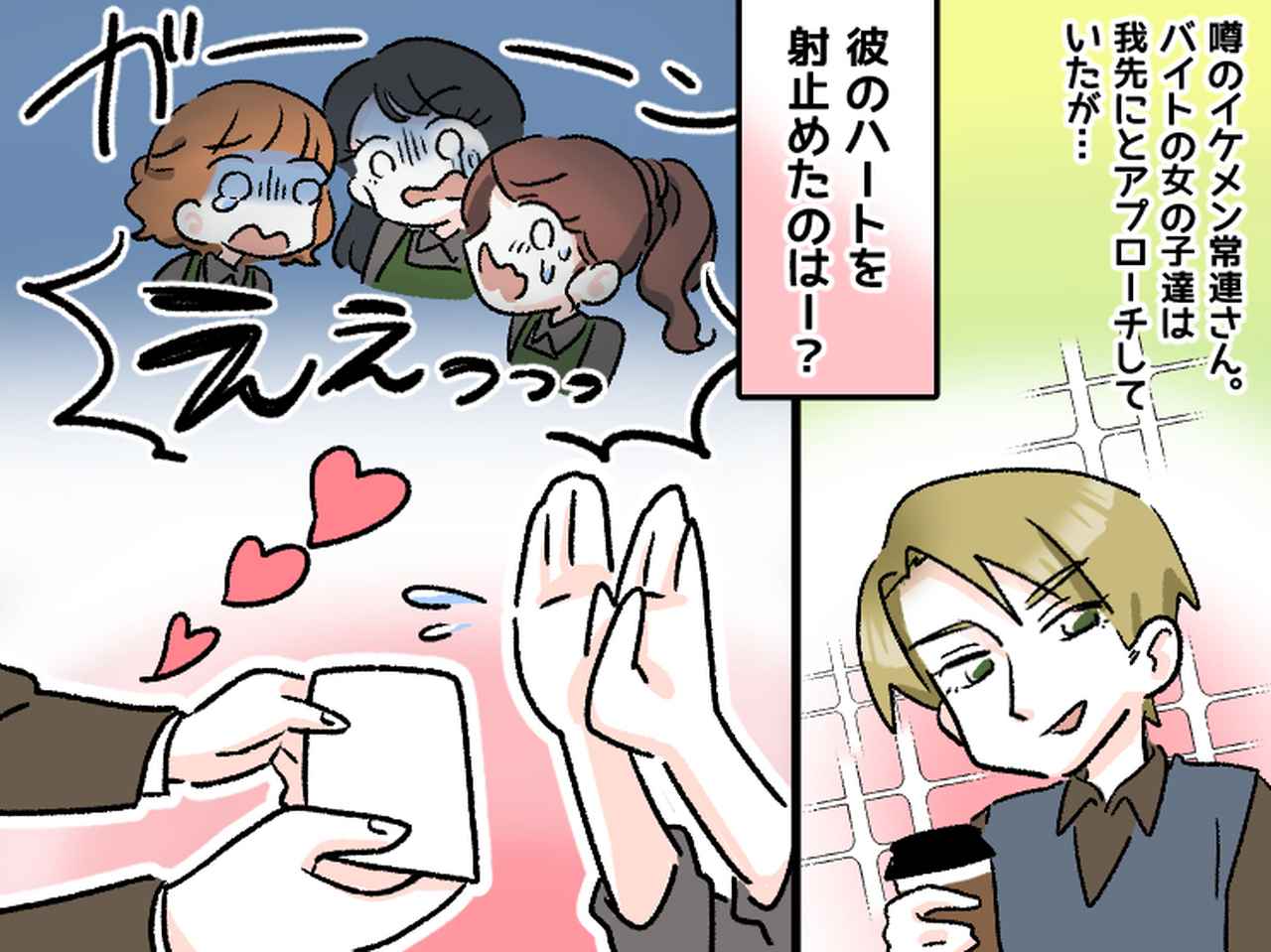 ある日、ひときわ目を引くスーツ姿の男性が来店しました。落ち着いた雰囲気と整った顔立ちに、店内の女子たちは一気に色めき立ちました。ドリンクを手渡す際にカップにメッセージやかわいらしいイラストを描こうと、女性スタッフたちの競争が始まったのです。